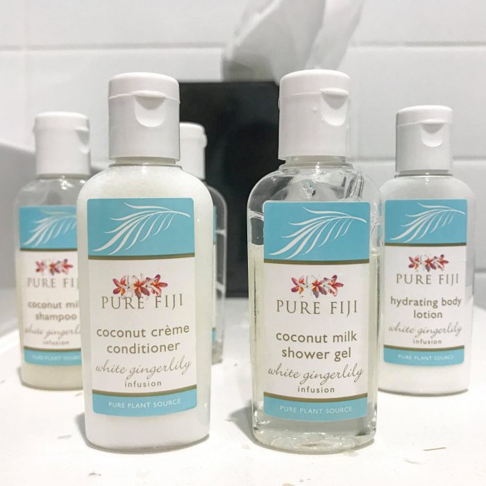 Ko smo prispeli v glavno stavbo se je naš čas prevrtel v zgodnjo 20.stoletje v kolonialne čase, ko so tukaj vladali Angleži. Bila sva hvaležna, da je ta hotel na novo prenovljen in da imamo možnost občutiti tiste čase. Bivali smo v Superior sobi, ki se razlikuje od Garden view sob po tem, da so obrnjene proti morju in bazenu, čeprav naš razgled na morje ni nič kaj posebnega. Drugače pa je soba zelo prostorna, z veliko kopalnico in kar je najbolj pomembno s kozmetiko Pure Fiji, ki jo obožujeva.