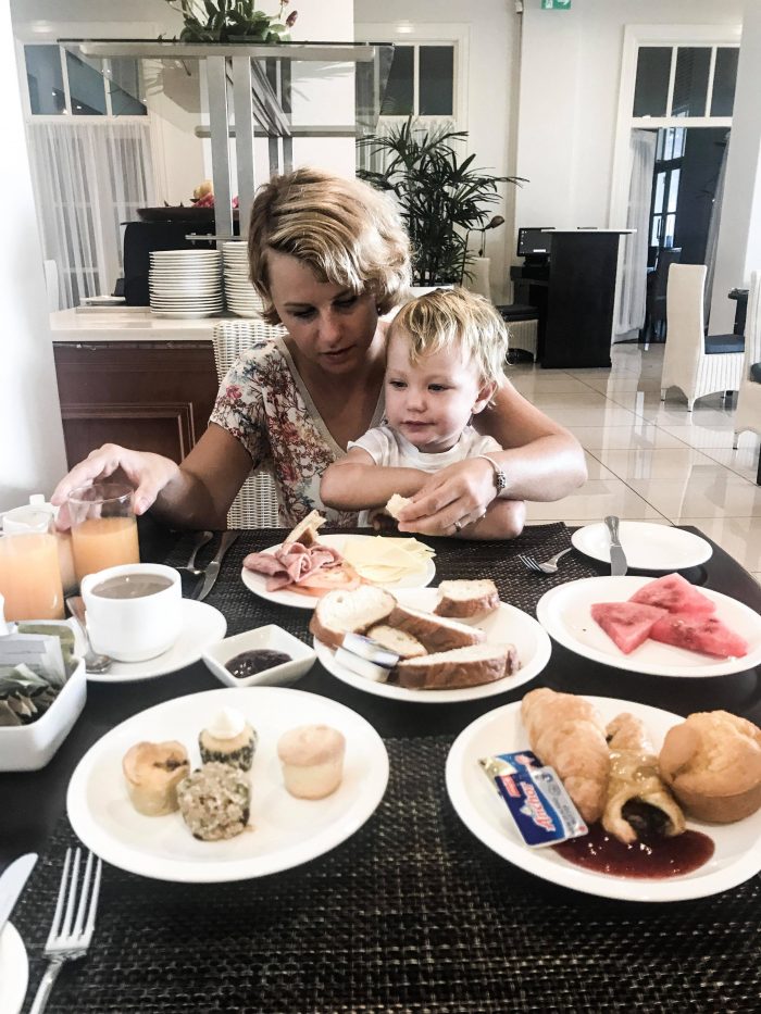 Odpravili smo se na Božično večerjo v restavracijo Levuka in nisva bila razočarana, najbolj nama je ostala v spominu neke vrste solata kokoda. To je okusna solata pripravljena iz koščkov sveže surove ribe, marinirane v kokosovem mleku z limono, šalotko, čilijem, paradižnikom ter svežimi koriandrovimi listi. Ko pa govorimo o hrani, se ne moreva upreti njihovim bogatim zajtrkom, že zaradi tega je bivanje v tem hotelu vredno.