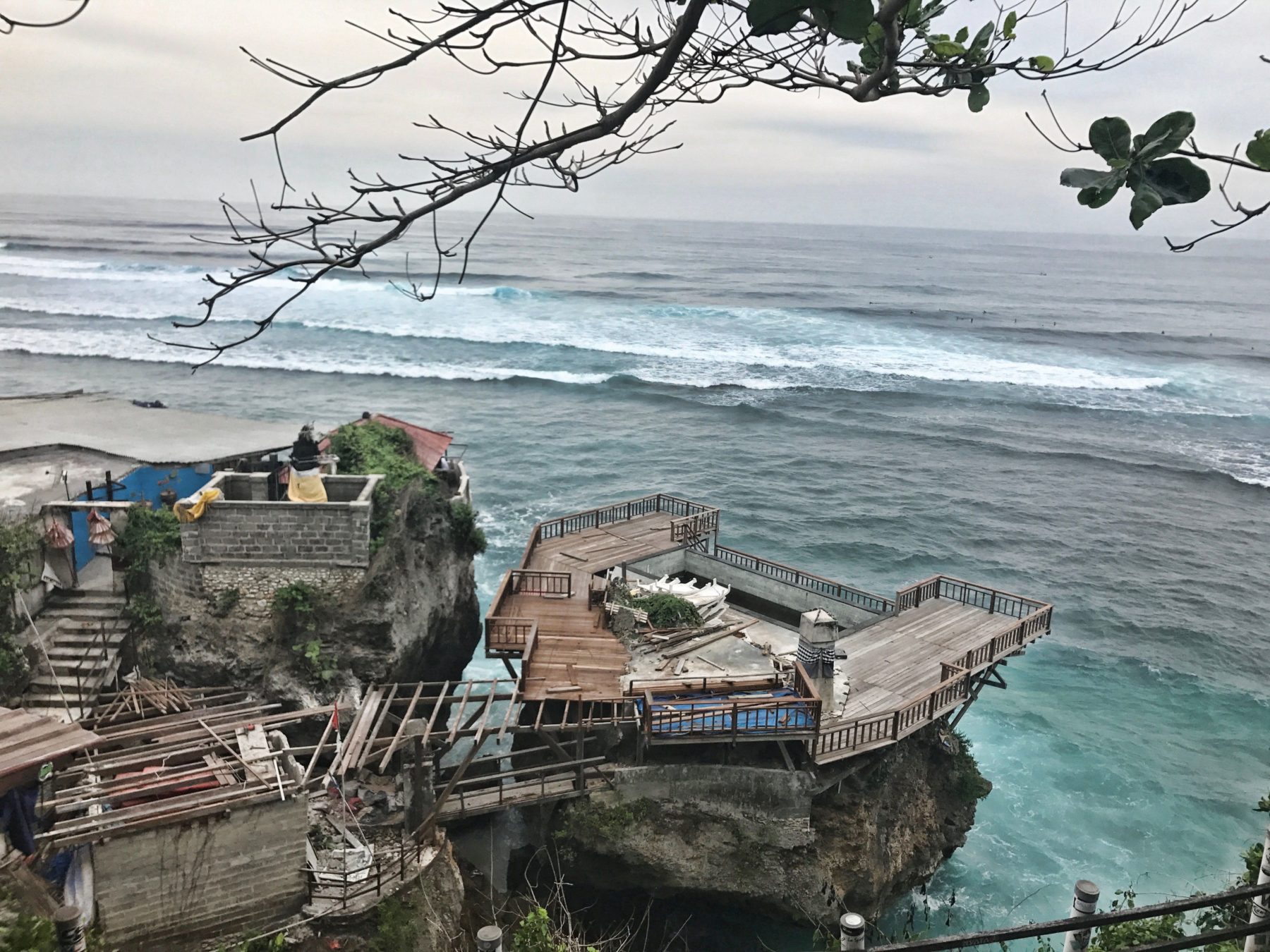 Uživanje v bazenu-Villa Blubambu, SeminyakTako smo že naslednji dan sedli za motor in naredili izlet južneje od Kute do lepih peščenih plaž. Padangpadang in Suluban sta kraja poznana po dobrih valovih za surfanje, sta pa tudi kraja kjer se lahko malo tudi namočite v toplem morju. Čeprav slednji ni primeren za poležavanje se ga pa splača obiskati zaradi zanimive lege med dvema ogromnima kamnitima stenama in zanimivim izhodom na morje. Obiskali smo nato še tempelj Uluwatu, ki leži na strmi pečini nad razburkanim morjem.