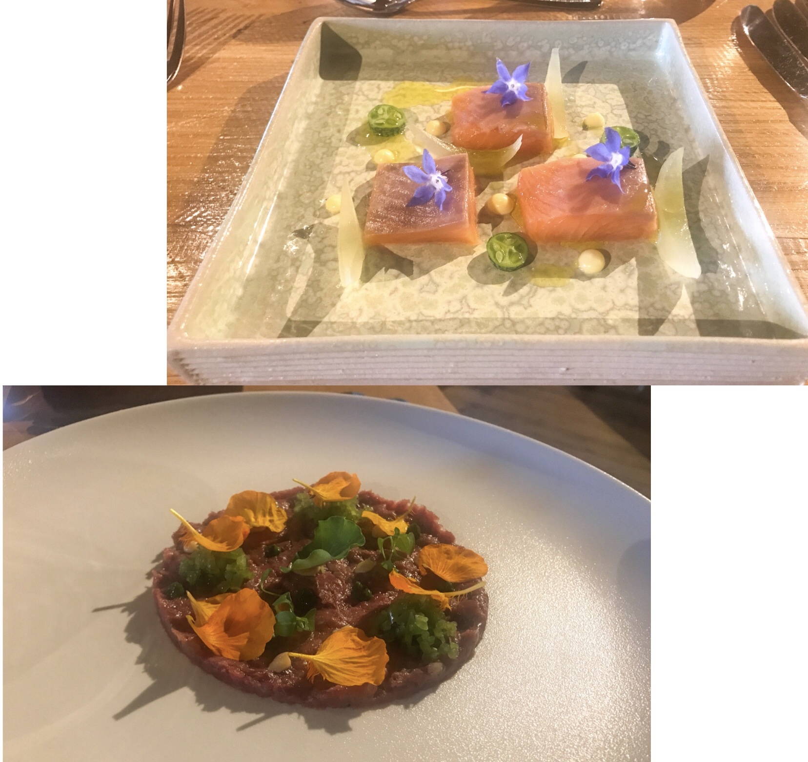 Sledili sta dve jedi: mesna in ribja. Slednja je bila postrv s citrusi in kumaro, mesna pa je bil tatar zorjene govedine in kapucinka.