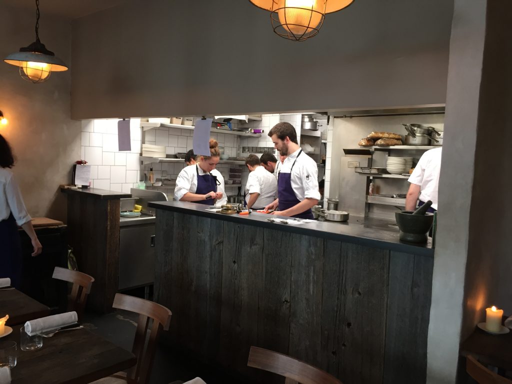 Odpravila sva se tudi na večerjo kljub temu, da se Suzi ni povsem strinjala zaradi pozne ure, ko bi Ana morala že skoraj spati. Ampak ker mi skoraj vse ugodi, smo se odpeljali s taksijem do Avenue Parmentier. Le Chateaubriand je majhen bistro z velikim mojstrom Inakijem Aizpitartejem, ki je bil uvrščen zadnja leta med najboljše restavracije na svetu, top 50 restaurant in the world, predstavljen pa je bil v oddaji znanega pisca in novinarja Anthonya Bourdaina, ki je včasih tudi vihtel svoj nož v številnih ameriških restavracijah.