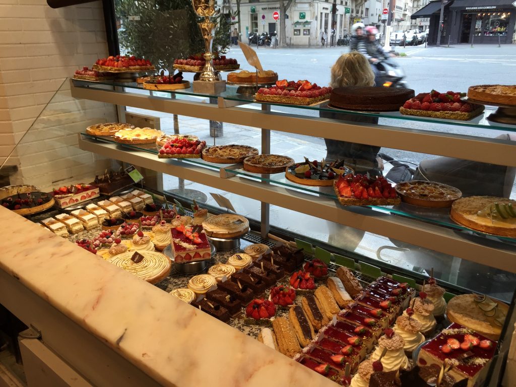 Po kosilu smo se lahko počasi odpravili peš proti domu, saj je dež že čisto prenehal. Na poti nazaj so nas premamljale številne lepo založene patiserije z mamljivimi sladicami, ki so nas kar vabile in jih v izložbi prodajaln ni bilo konca. Bila sva kot dva otroka, ki s prstom kažeta kaj bi vse poskusila. Od macaronov z mnogimi okusi do raznih sladic s kremastimi nadevi in čokoladnimi prelivi, skrbno okrašeni z precizno natančnostjo francoskih mojstrov.