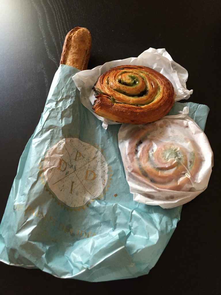 Za konec dolgega popoldneva pa sva si še prišparala eno najboljših pekarnic Du Pain et des idees in si privoščila najboljšo pecivo na svetu Les escargots ali slovensko, polžki. Kar izpuhteli so nama iz rok tako sva jih na hitro pomalicala in utrujeno sklenila, da se bo najbolje domov odpeljati kar s taksijem.