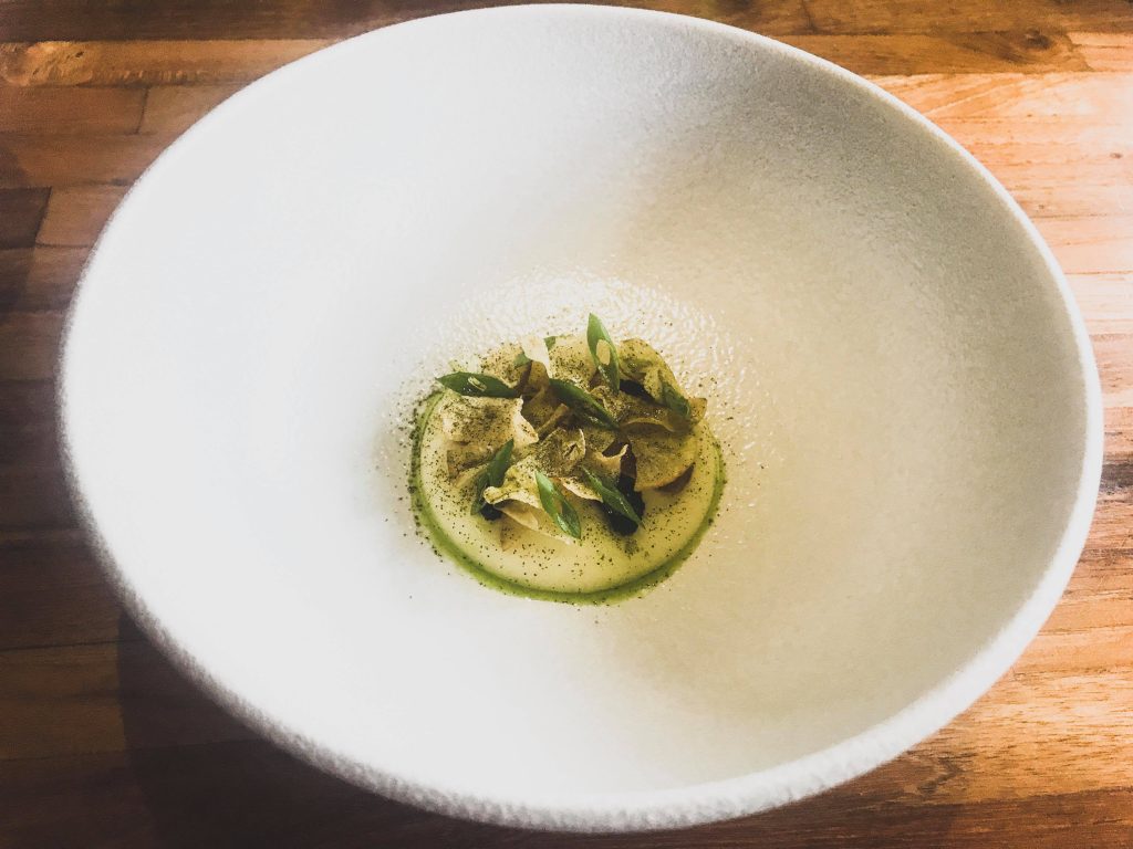 Izbrala sva si pet hodni meni, mesni in vegeterijanski meni, za spremljavo pa so imeli koktejle a se nisva odločila, ker sva morala pripeljati skuter z vsemi nami tremi dobro uro vožnje nazaj do Cangguja. Pred petimi glavnimi hodi je še sledil šesterček malih hodov, ki so bili vsi božansko okusni in tako pestri v ustih, da sva neizmirno uživala.