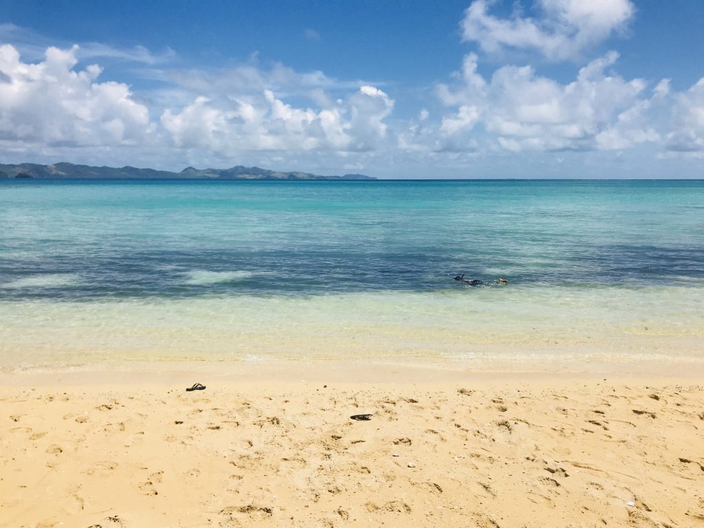 Ta rajska plaža je bila za nas najlepši kraj na otoku, če ne celo morda ena najlepših in čistih plaž kar sva jih sploh videla do sedaj. Plaža je posebna že zaradi dejstva, da je obdana z obeh strani z belim peskom v sredini malega polotočka pa je prijeten nasad kokosovih palm in papaj. Tako v senci teh lahko preživite prijeten piknik ali pa kar cel dan uživate v plavanju in poležavnju čisto sami kot kakšni brodolomci.